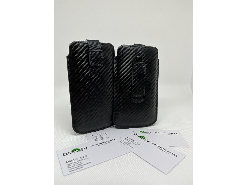 Kvalitní univerzální kožené pouzdro v motivu karbon.