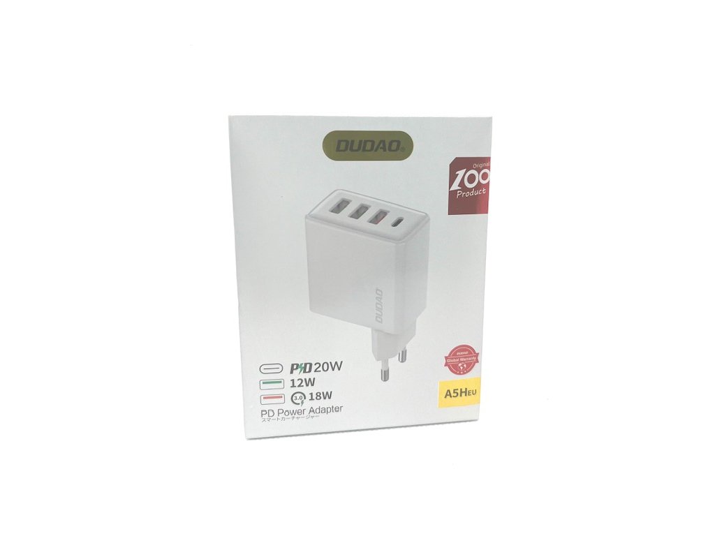 Záleží vám na čase při nabíjení zařízení? Nástěnná nabíječka od Dudao je technologie, která vám umožní dosáhnout maximální efektivity a zároveň bezpečnosti a stability práce i při nabíjení 4 zařízení najednou, takže můžete nabíjet své zařízení ve velmi krátkém čase! S touto nabíječkou můžete napájet téměř jakékoli zařízení. Nabíječka má 2 typy USB: USB-A a USB-C. Příslušenství je také kompatibilní s protokoly rychlého nabíjení PD a QC3.0, které v kombinaci s výkonem poskytují vynikající výsledky a zajišťují maximální komfort používání. Uvnitř nabíječky je také čip, jehož hlavním úkolem je zajistit, aby se zařízení nepřebíjela.